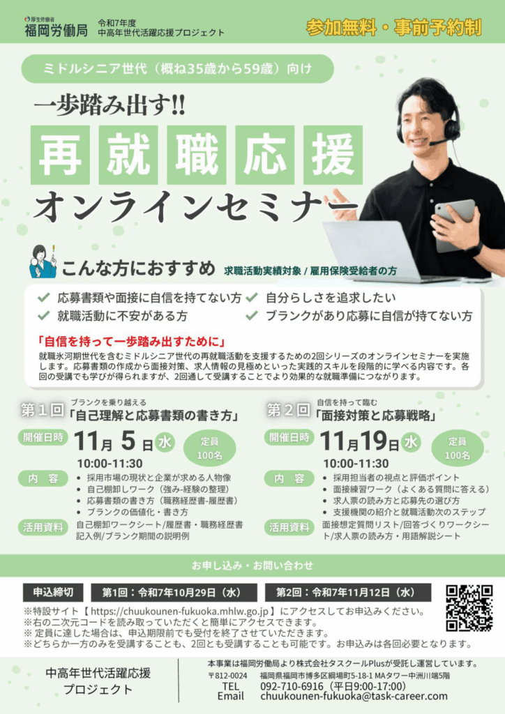 - 福岡で就業・転職希望のミドルシニア世代(概ね35才から59歳)の方